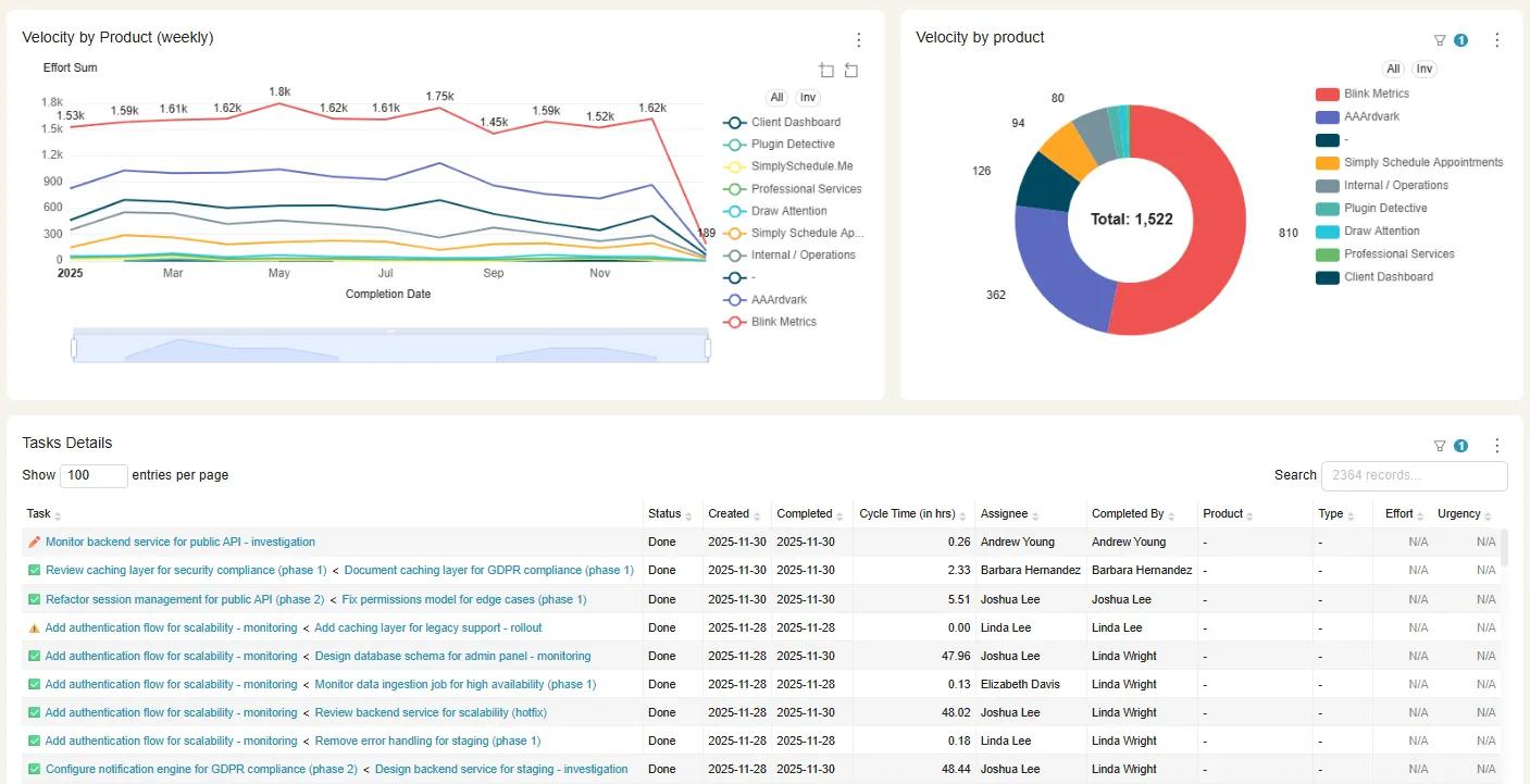 - Move past surface-level metrics and discover the “why” behind every number by drilling into specific teams, projects, or dates in a few clicks.