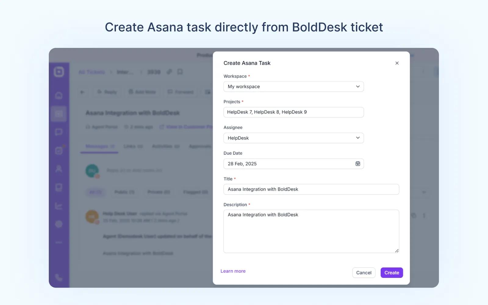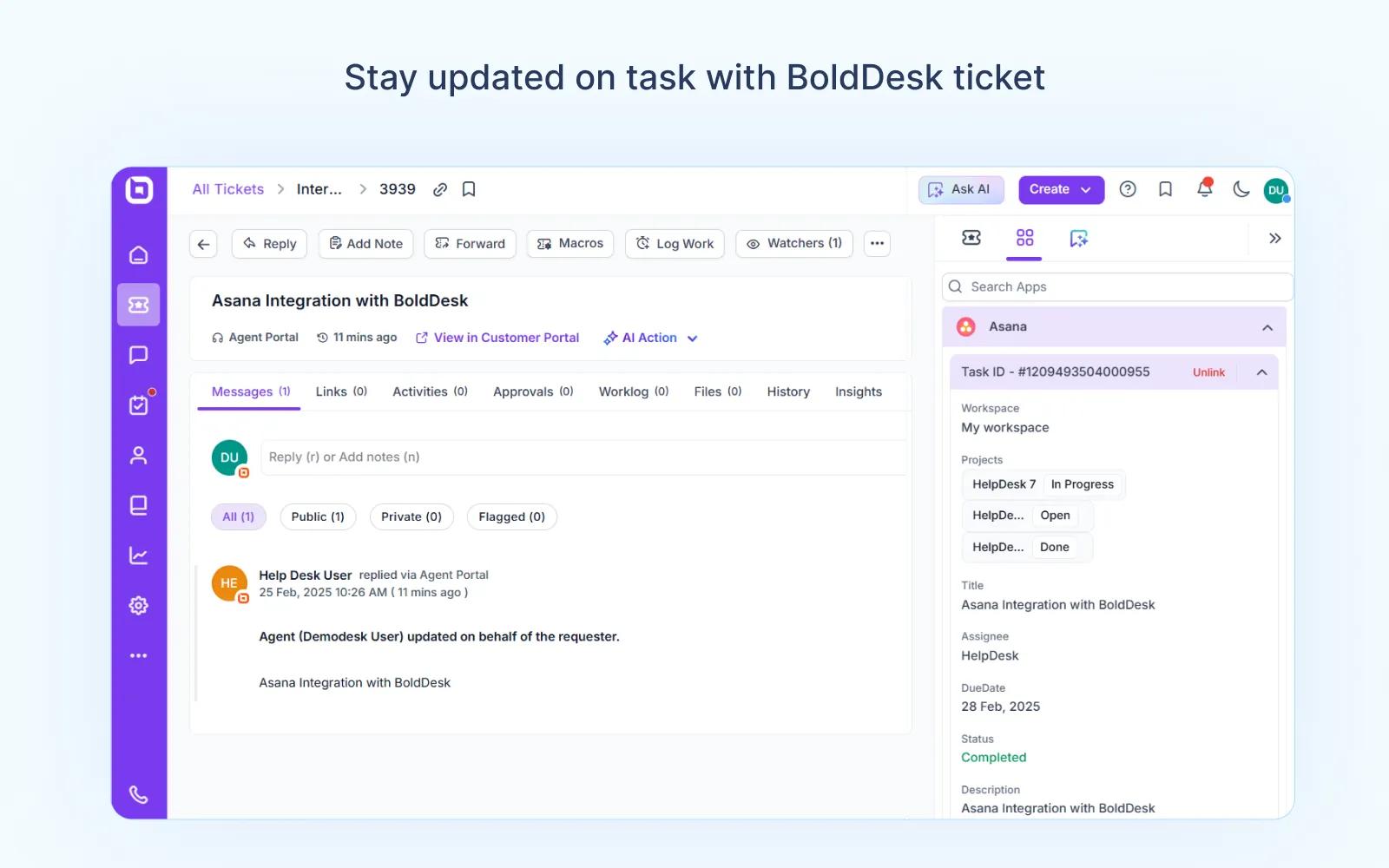 Connect Asana with BoldDesk® for efficient task and ticket management.