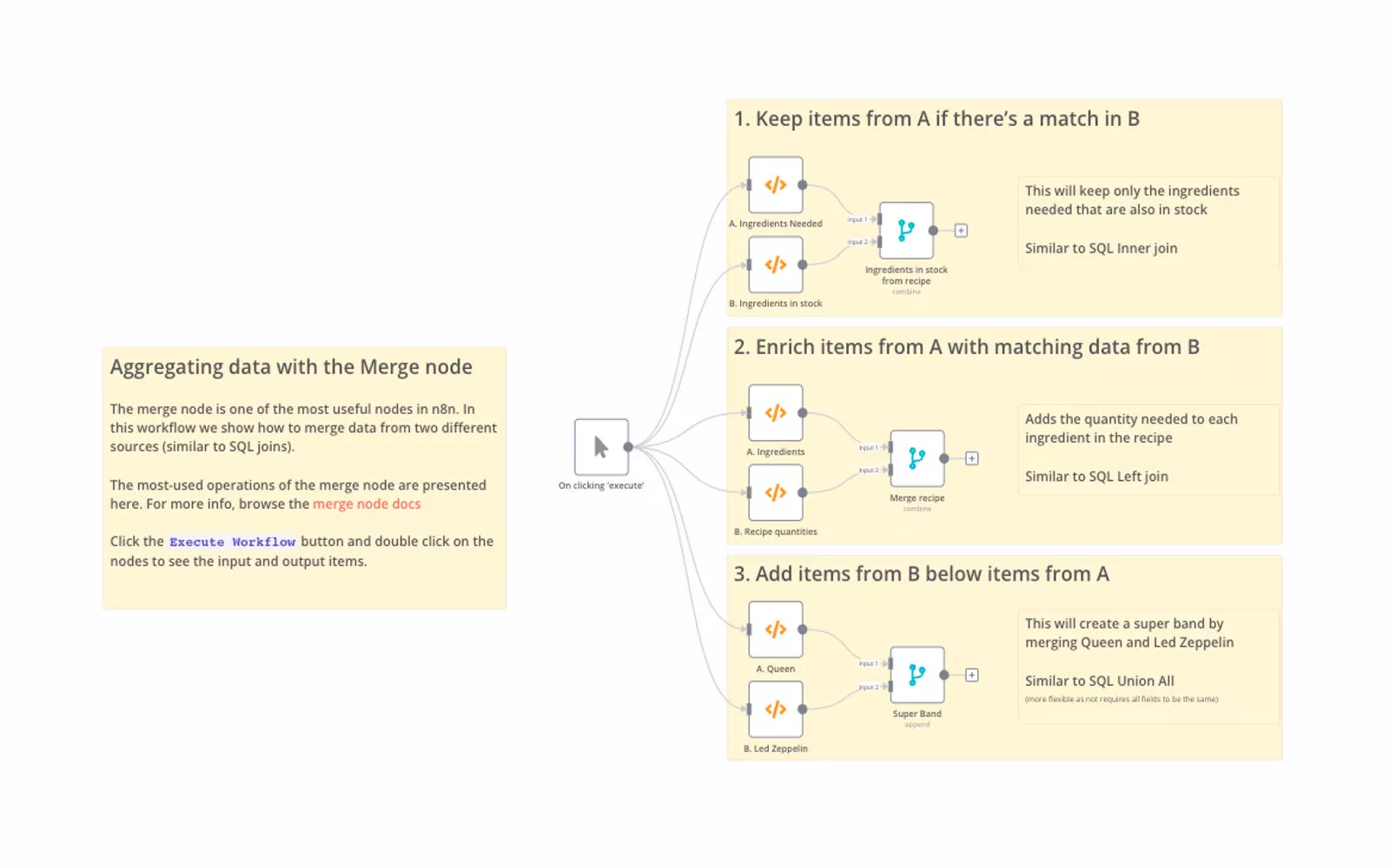 n8n helps you build workflows with Asana using Javascript when you need flexibility. Or quickly connect apps with a drag n’ drop GUI when you don’t. You can easily handle advanced functionality like implementing multiple triggers, as well as branching and merging your flows.