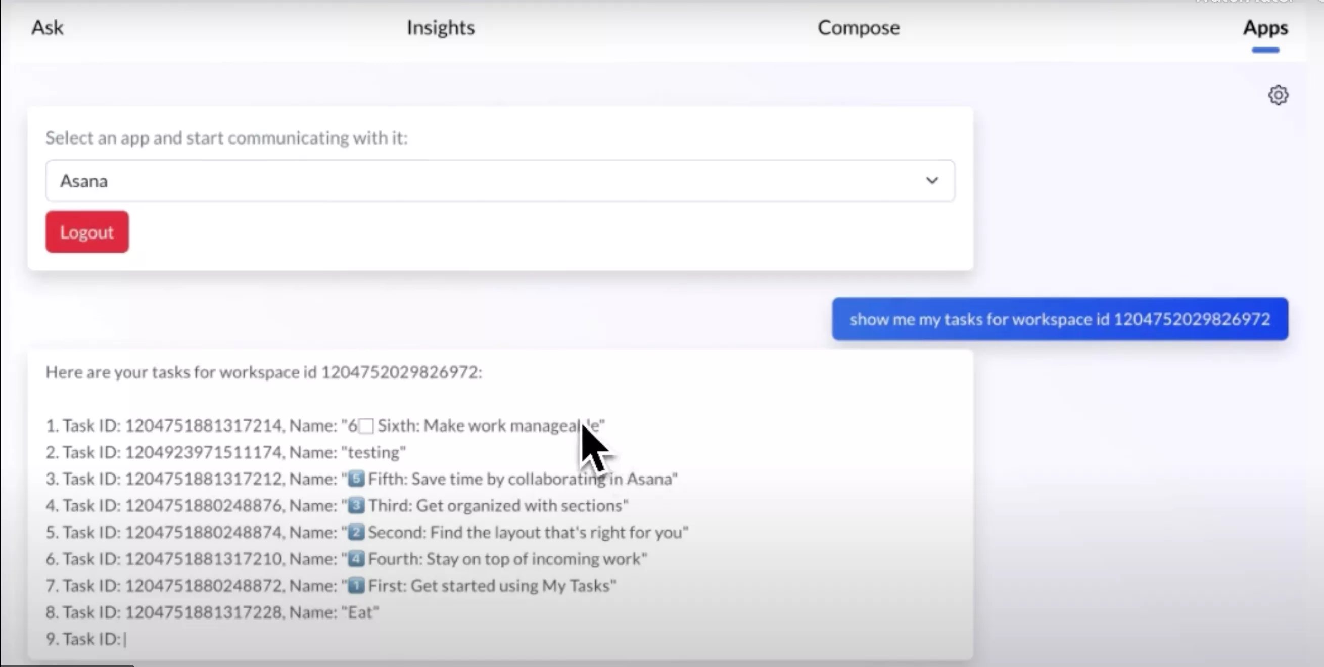 With the Neuralmind chat widget, you can access your Asana tasks and more to improve collaboration and ease of access.