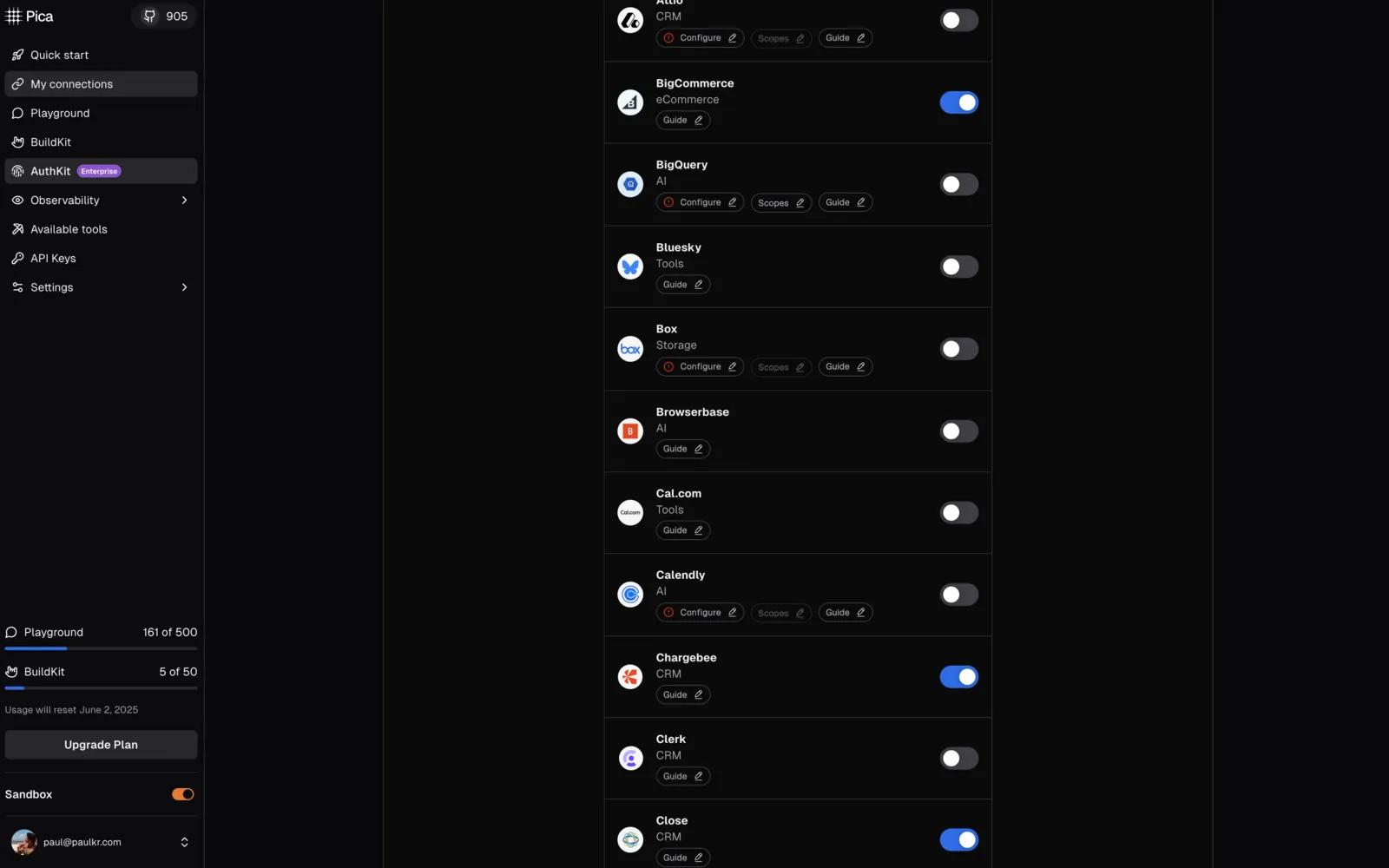 Pica is an integration infrastructure that gives any AI agent uncapped real-world tools and a vibe-coding workflow builder. OneTool ships not just full API schemas but human-vetted knowledge of scopes, limits, and other prerequisites so calls land right the first time. AuthKit locks down OAuth, token rotation, and network traffic, while BuildKit turns a plain-language prompt into a live connection in seconds.