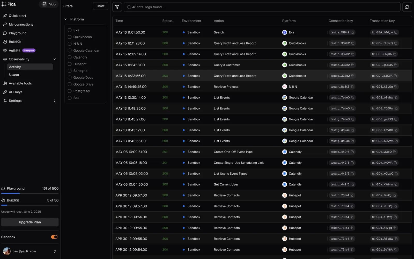 A retrieval-augmented selector pulls from more than 13,000+ actions across 90+ integrations, so your agent is never boxed in by a fixed tool list. Built in Rust and tested end to end, Pica installs once, needs zero config, and lets you stay focused on product, not plumbing.