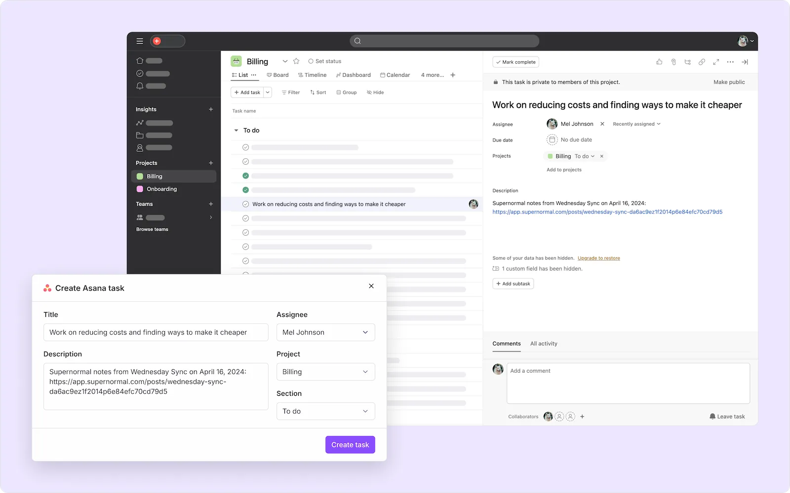To learn more about using the Supernormal + Asana integration, visit Supernormal.