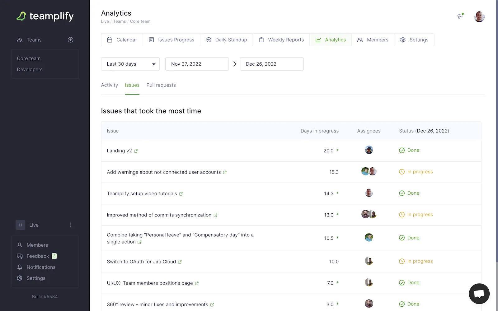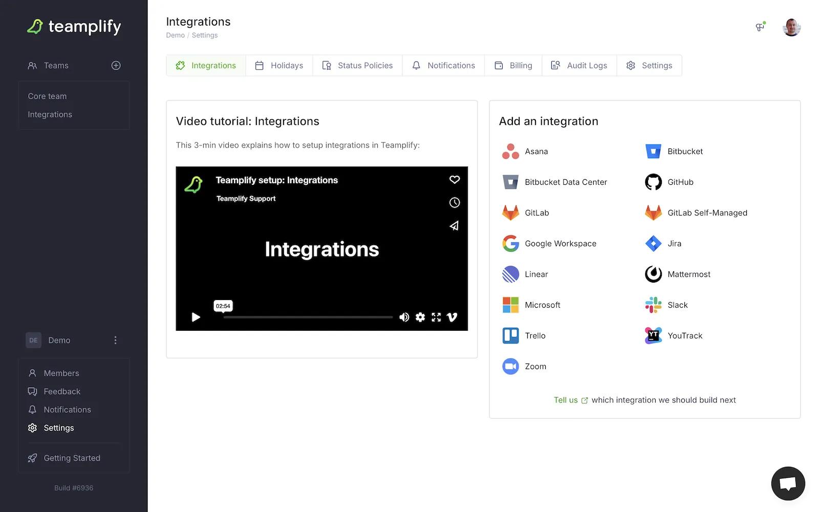 Teamplify is the ultimate development team productivity suite with over a dozen integrations - Asana, GitHub, Slack, Zoom, Google, and more.