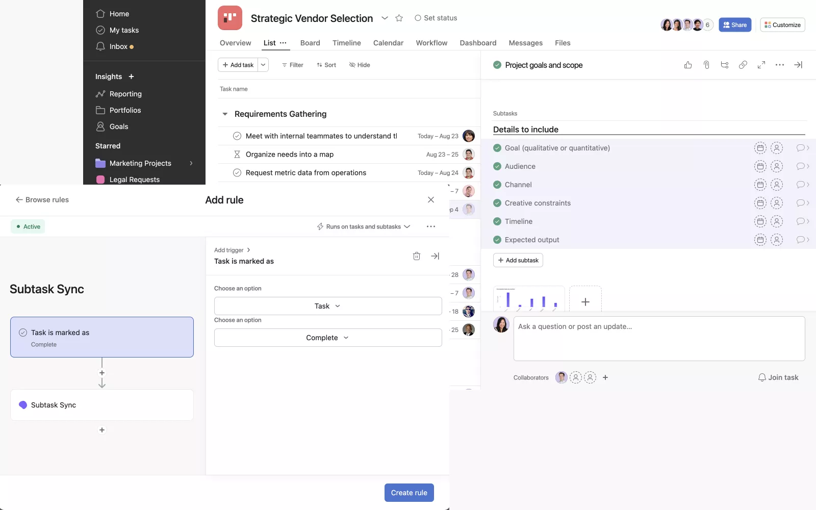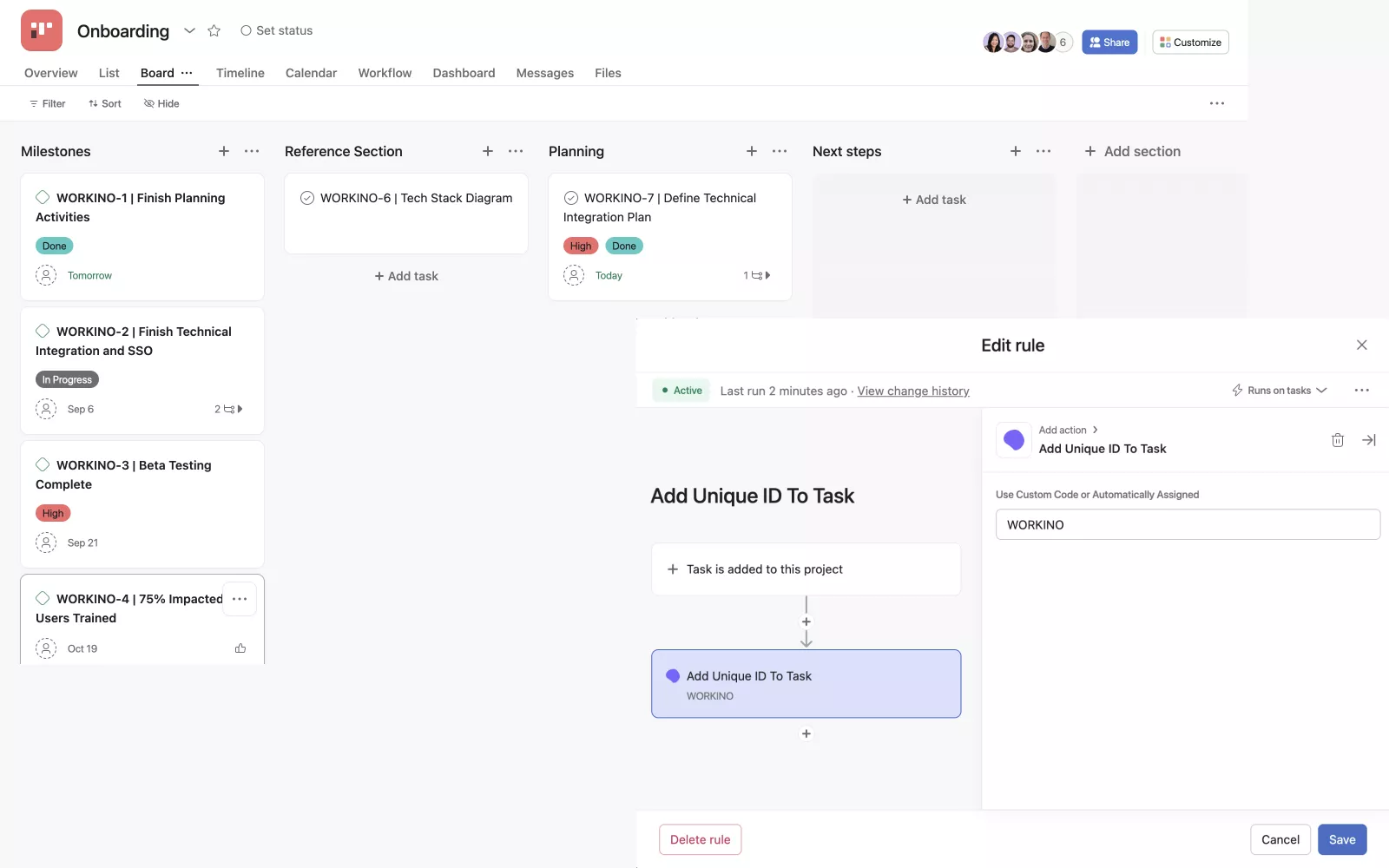 We simplify challenging tasks in Asana by offering Rules in Asana and workflows on our platform. Based on user requests, we're developing features like assigning unique IDs to tasks and exporting goals in JSON format.