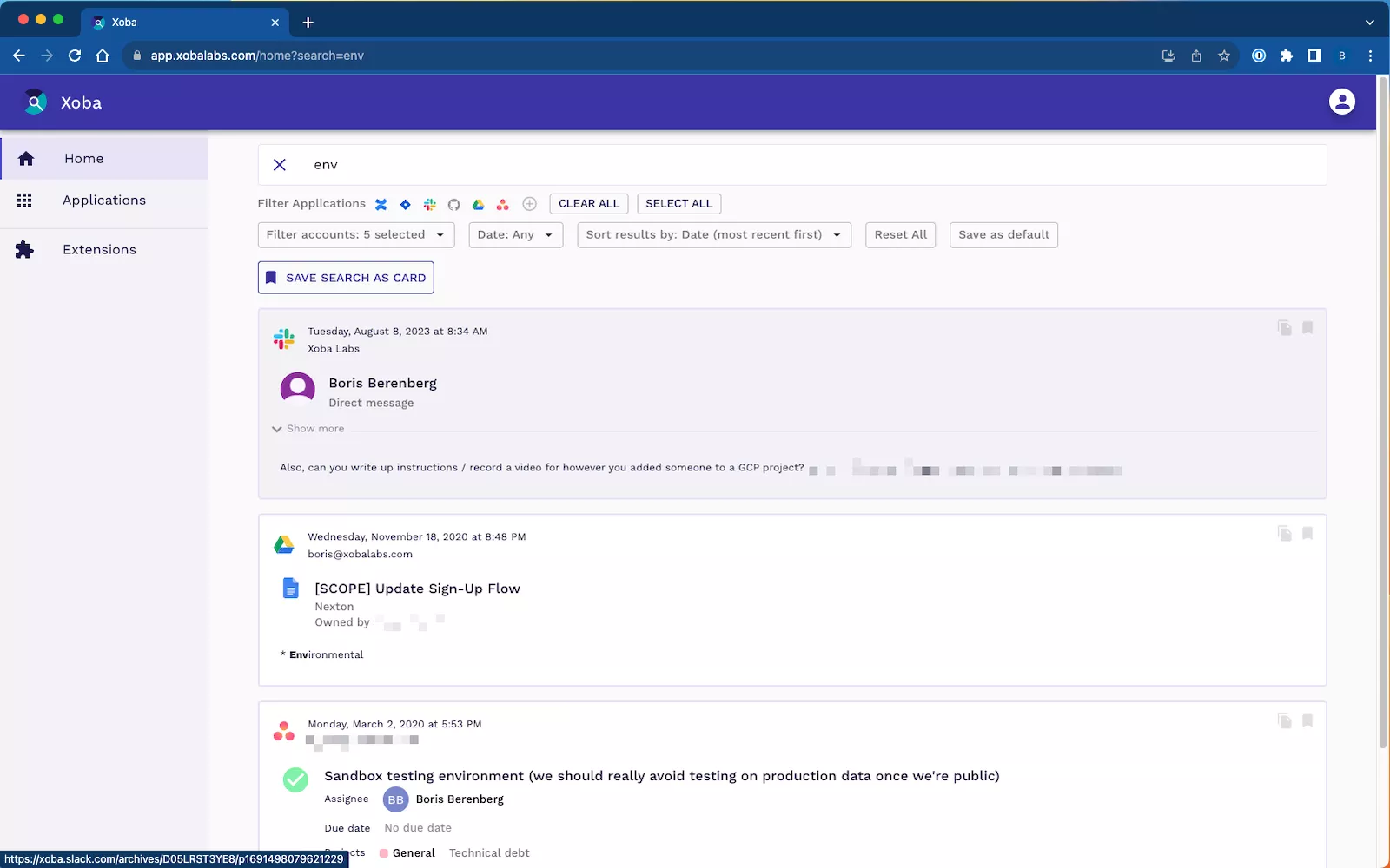 Xoba helps you quickly and securely search across apps like Asana, Box, Confluence, Google Drive, Dropbox, Github, Jira, Microsoft 365, and Slack.