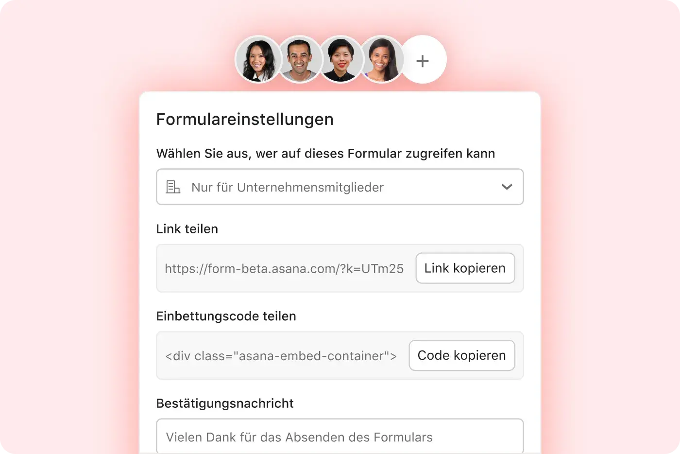 Senden Sie einen Link zu Ihrem Formular, um einfach darauf zuzugreifen, oder betten Sie ihn auf Ihrer Website ein.