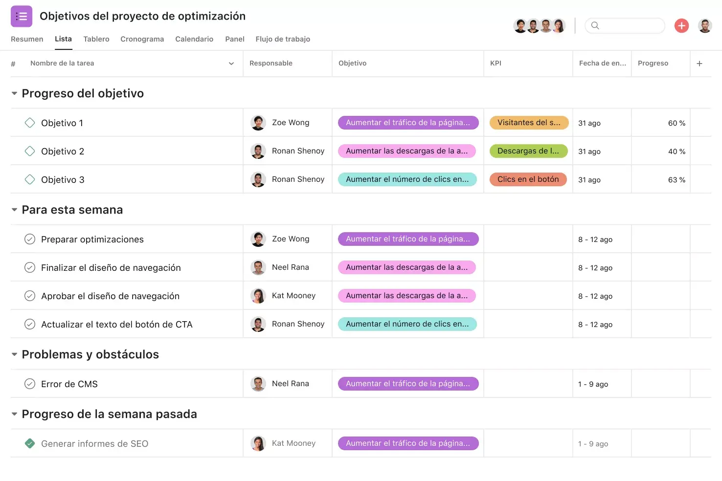 Con una aplicación de gestión de proyectos como Asana podrás gestionar y planificar tus proyectos con diversas herramientas: