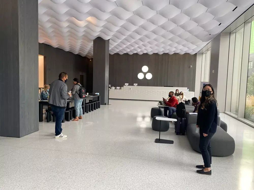 At Asana, we’ve seen that collaboration and trust are spurred by shared daily experiences, face-to-face communication, and opportunities for impromptu discovery and co-creation. Given that we’re a growing, globally distributed company, we’ve naturally supported hybrid team environments and flexibility while being office-centric. After spending more than a year physically distanced, we’ve safely and mindfully supported our global teams to return to in-person collaboration in our new San Francisco headquarters at 633 Folsom Street.